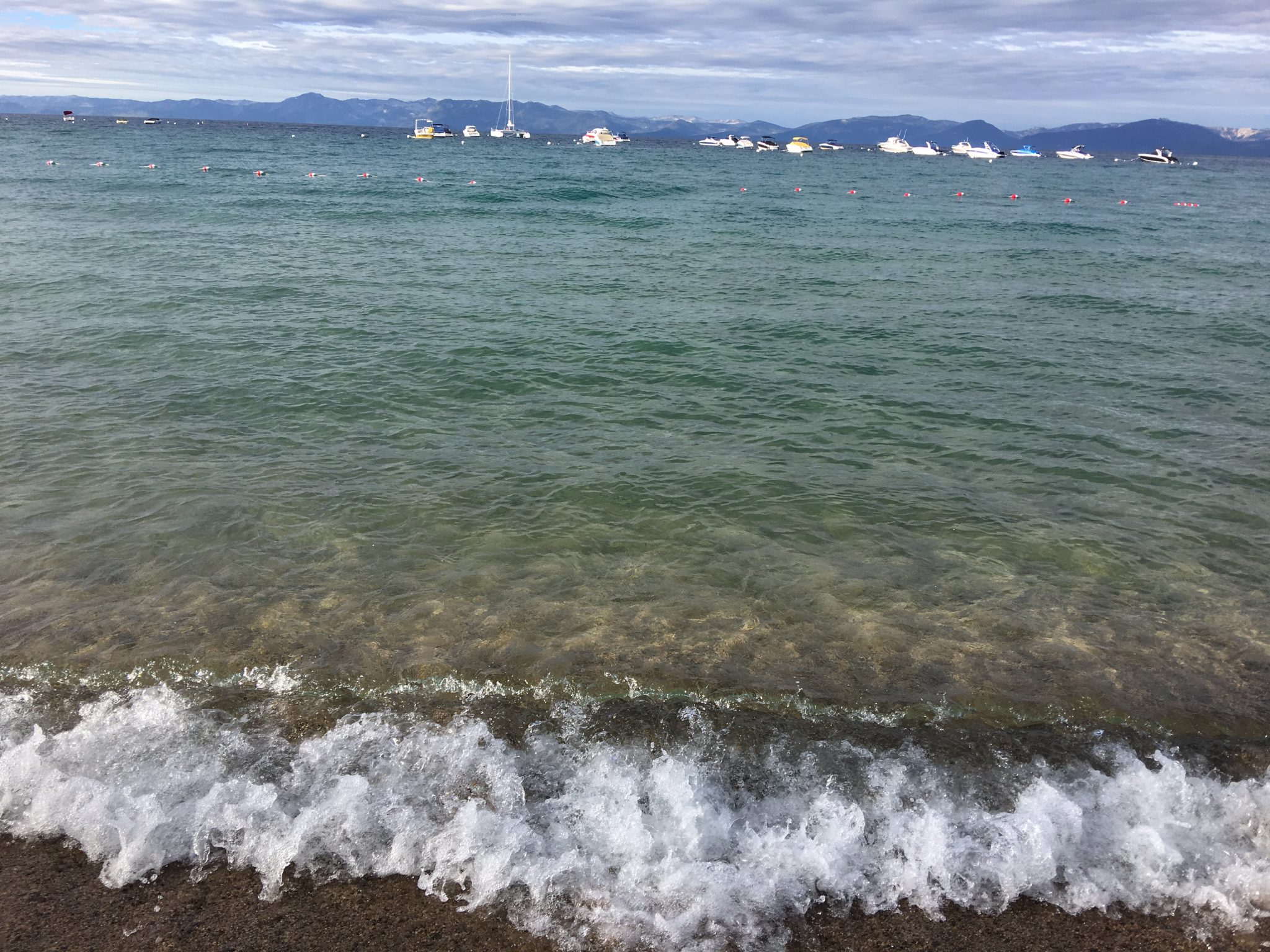 ぐっすりと良い睡眠がとれた一夜が明けた翌朝のタホ湖。空気も湖水も清んでて爽快です。