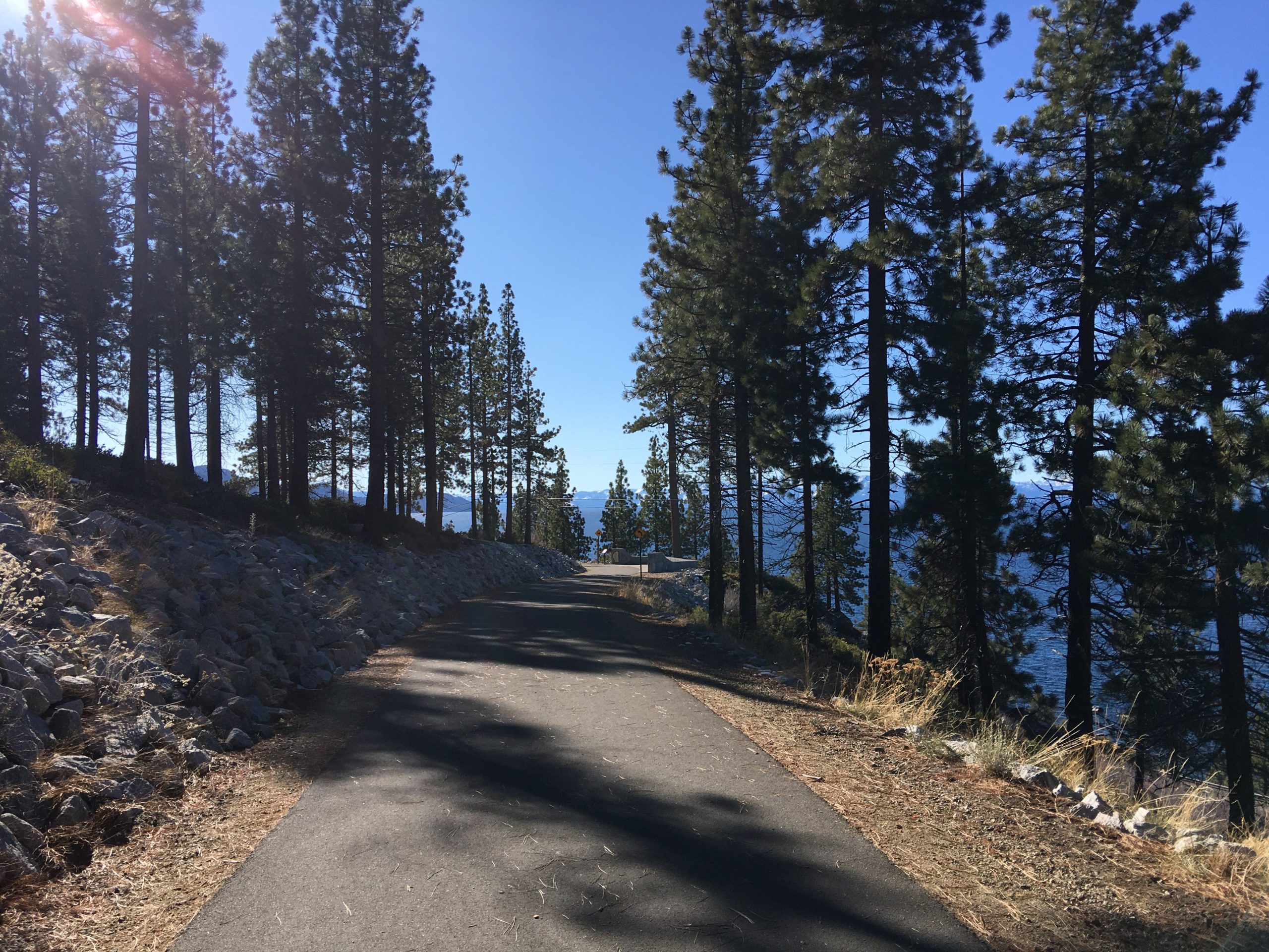 トレイルはIncline Villageの東端~Sand Harbor Lake Tahoe Nevada State Park間、全長約2.5マイル(約4km)、平均幅約10フィート(約3m)のゆったりした舗装道で、ウオーキング、ランニング、サイクリング、が楽しめます。モーターバイクやスクーターはNGです。トレイルのエチケットは右側通行・歩行者優先です。ペットは終始リーシュに繋いでいればOKです(糞の後始末は必ず!)。