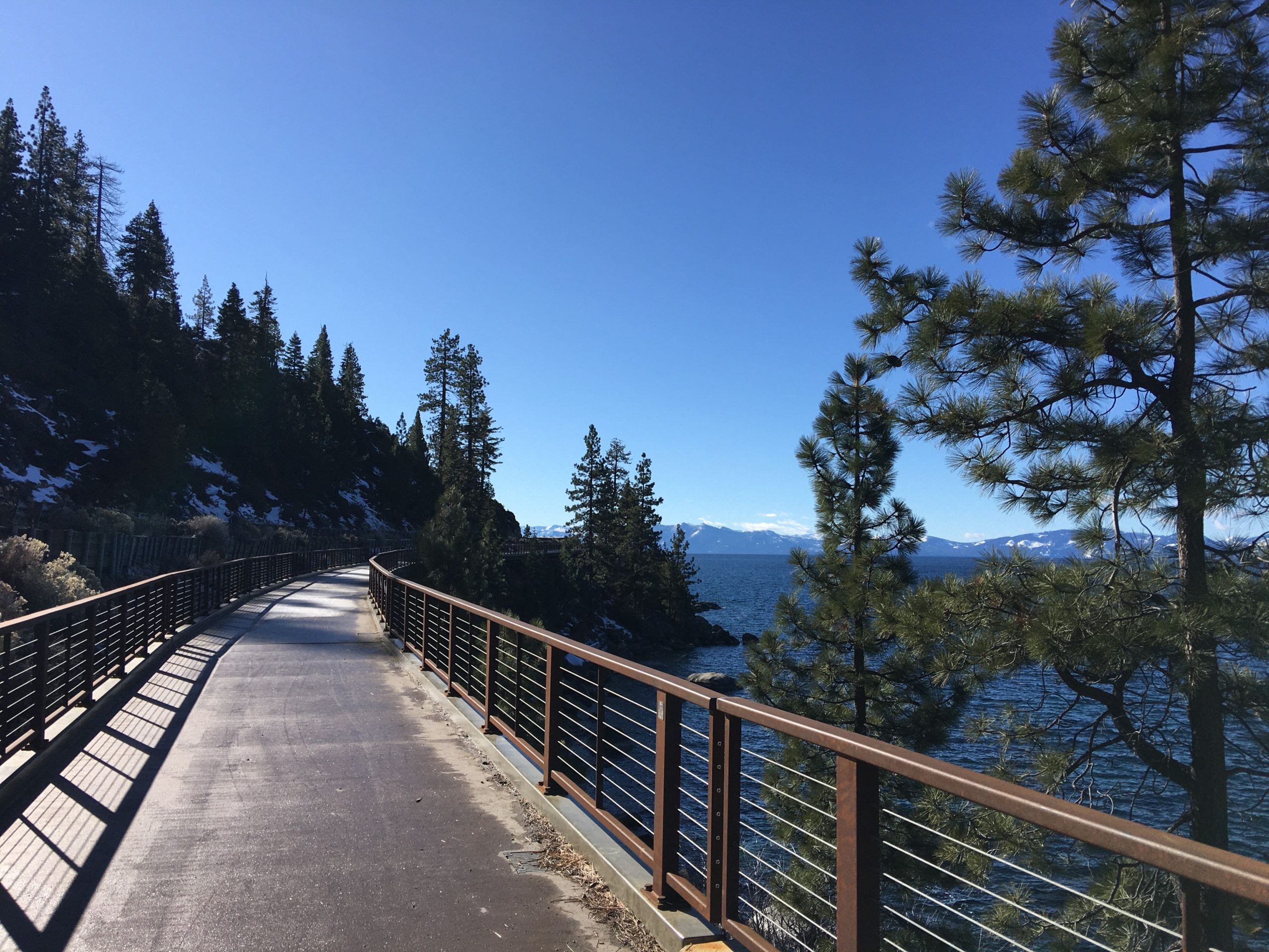 昨夏(2019年6月)に満を持して開通した Tahoe East Shore Trail は、タホ湖の住民やファンにとって積年の夢であった湖岸沿いの安全で風光明媚な遊歩道兼バイク・トレイル。総工費は約12ミリオン・ドル(約13億円)。2019年11月にはジャスティン・ビーバー(25才)がプライベートでこの遊歩道を訪れた際に「お祈りと瞑想をしに来たんだ。」とインスタグラムに投稿したことで、この遊歩道、一躍全国区になってもいます。オープンから夏季、そしてビーバー効果があった際の混雑を避けてるうちに時間が経っちゃいましたが、落ち着いたであろう2020年1月にようやく訪れて来ました!