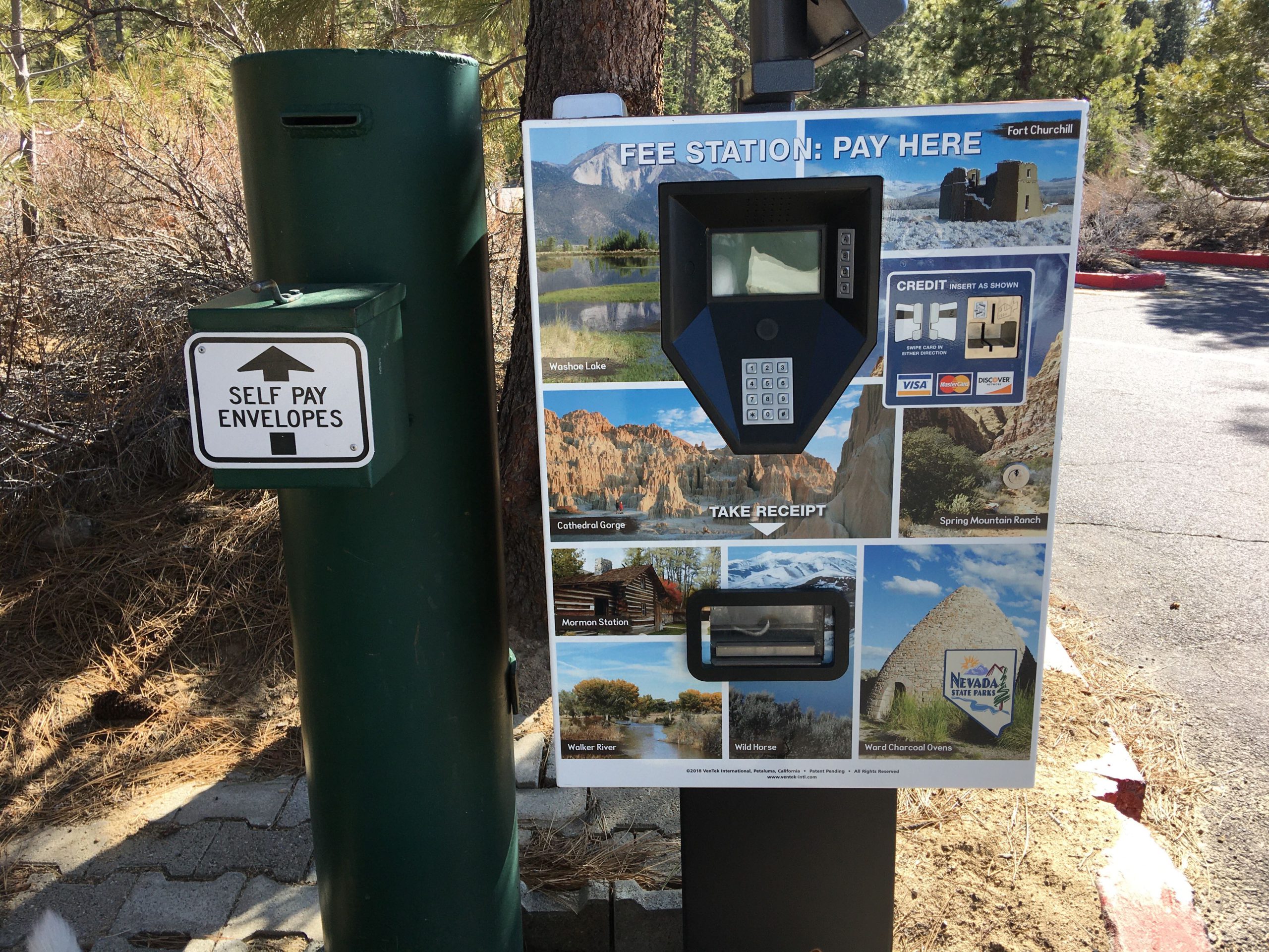 駐車場代は2020年1月時点では無料。トレイルの拡張や維持等に充てるとして駐車場代徴収をそのうちに始めるとのことです。なので駐車場内に設置してある駐車場代金支払い機はまだ作動してませんでした。