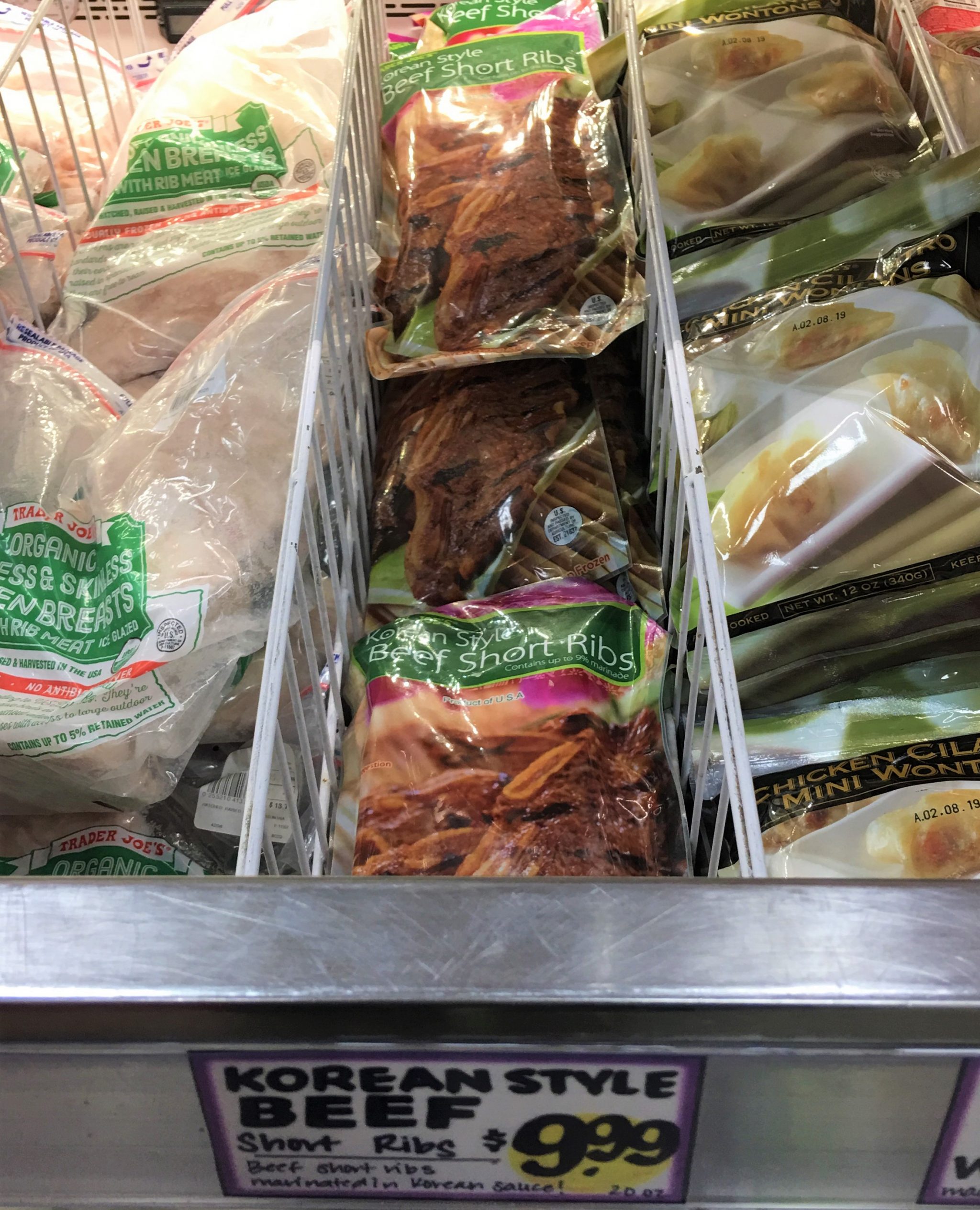晩御飯の献立に悩む日に助かる冷凍しゅうまい(上左)、冷凍餃子(上右)。日本から遊びに来た母は日本にこそ美味しい餃子い~っぱいあるのに何故かトレジョの餃子の大ファン。餃子は一袋約24個入。上右写真の餃子は豚ですが鶏の餃子やタイ風味な餃子なんかもあります。